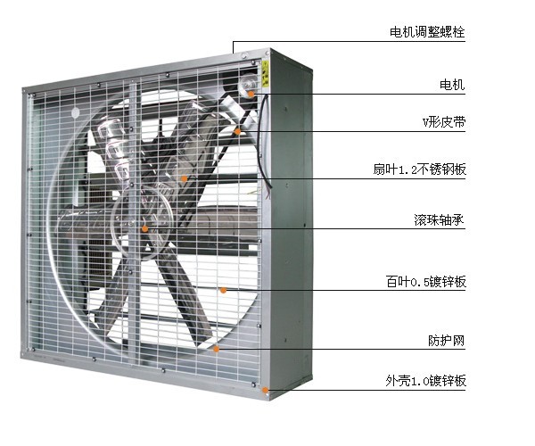 鐵皮負(fù)壓風(fēng)機(jī),顧名思義,其外殼主要采用鐵皮(鍍鋅板)材質(zhì)制成,利用負(fù)壓原理進(jìn)行工作,主要用于工業(yè)廠房、倉(cāng)庫(kù)、養(yǎng)殖場(chǎng)、溫室大棚等場(chǎng)所的通風(fēng)換氣、降溫除濕。